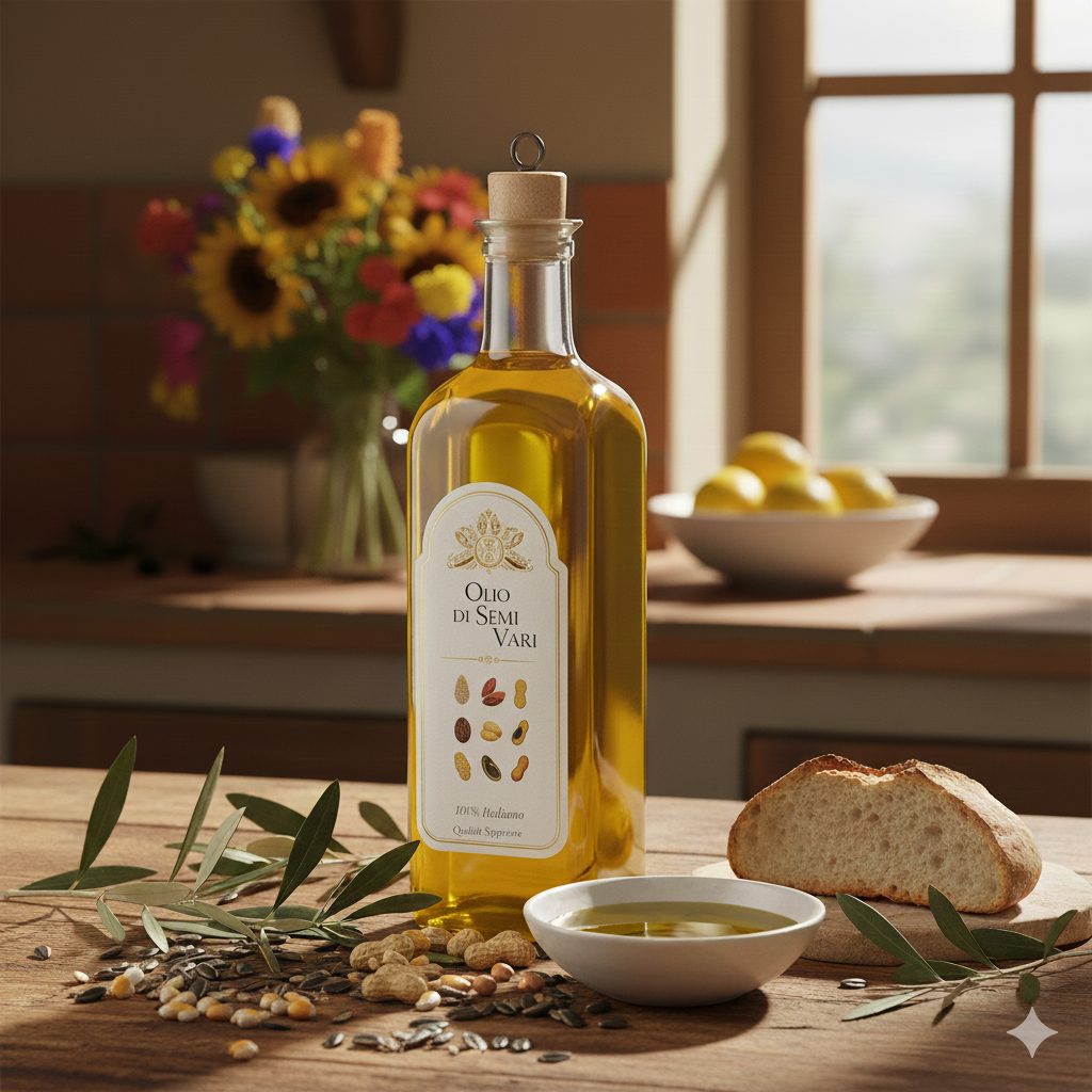 Miscela di oli vegetali selezionati per garantire un equilibrio ottimale di nutrienti e proprietà organolettiche.